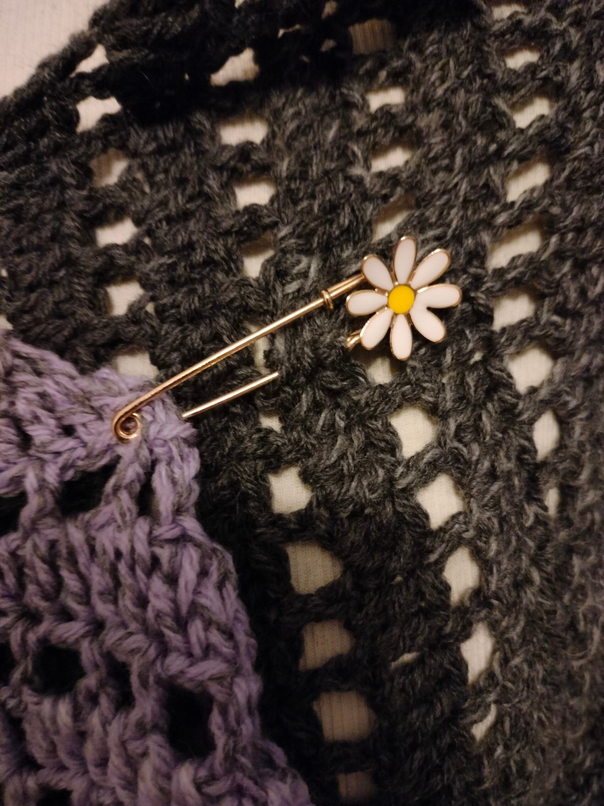 Châle, chèche, ou étole à porter selon son choix et ses goûts. Ce châle est composé de : 25% laine, 75% acrylique. Il mesure 1m66 de largeur et 76 cm de hauteur. La couleur se dégrade en blanc, lilas, gris souris, gris foncé . Vendu avec sa broche en acier inoxydable doré avec une jolie marguerite. Il égayera votre look de soirée ou du quotidien avec élégance.