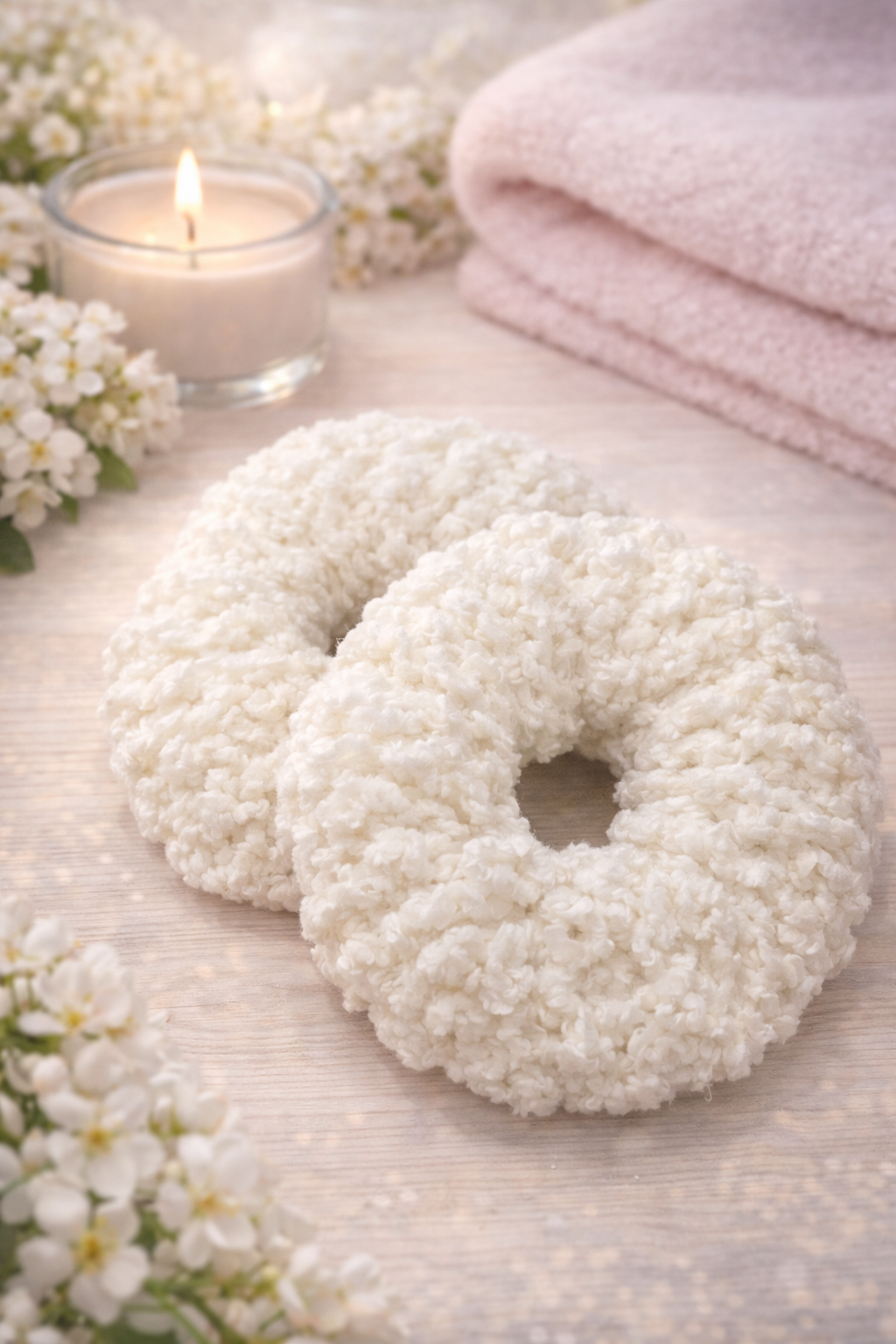 Magnifique chouchou en deux tours sur une couette haute ou juste posé sur un chignon. De couleur crème, il s'adaptera à toutes vos tenues. Il est aussi bien adapté à une maman qu'à sa fille. Fils chenille 100% polyester